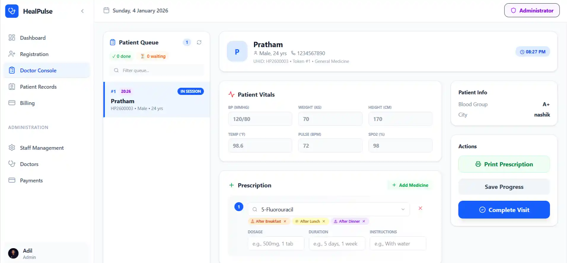 Manage queue, conduct consultations, prescribe medicines, and collect payments — all in one place.